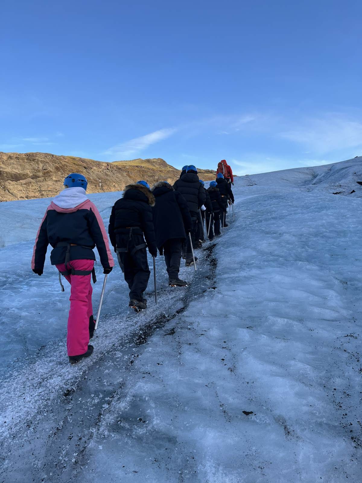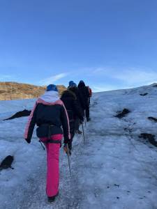 Thirty Year 11 GCSE Geography pupils spent 5 days exploring the southern part of Iceland just before February half term. Some highlights included visiting several incredible waterfalls such as Gulfoss, the bubbling hot water area of Geysir with the highly active Strokkur Geyser which erupts 20-30m in the air every 10-15 minutes, the black sandy beach at Reynisfjara, walking on a glacier with the aid of ice picks and crampons, a dip in the geothermal spa at the Blue Lagoon, as well as a walking tour of Reykjavík. However, the biggest & best highlight was seeing the Northern Lights each evening which was awe inspiring.
