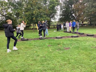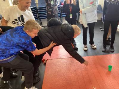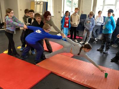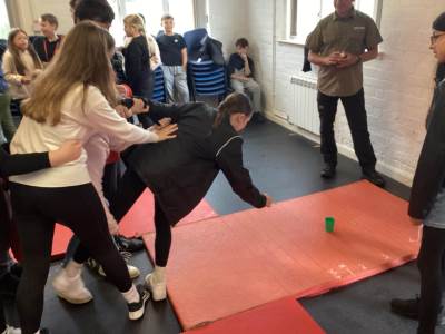 Activities included Conflict, a tricky tyre game where pupils had to cross without falling off; the Assault Course, where teams raced each other but had to start again if anyone fell; Building a Construction, which tested teamwork and problem-solving as pupils built a structure strong enough to hold four members of their form; and Cups, where pupils became “human cranes” to pick up and place cups with precision and coordination.