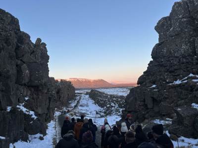 Thirty Year 11 GCSE Geography pupils spent 5 days exploring the southern part of Iceland just before February half term. Some highlights included visiting several incredible waterfalls such as Gulfoss, the bubbling hot water area of Geysir with the highly active Strokkur Geyser which erupts 20-30m in the air every 10-15 minutes, the black sandy beach at Reynisfjara, walking on a glacier with the aid of ice picks and crampons, a dip in the geothermal spa at the Blue Lagoon, as well as a walking tour of Reykjavík. However, the biggest & best highlight was seeing the Northern Lights each evening which was awe inspiring.